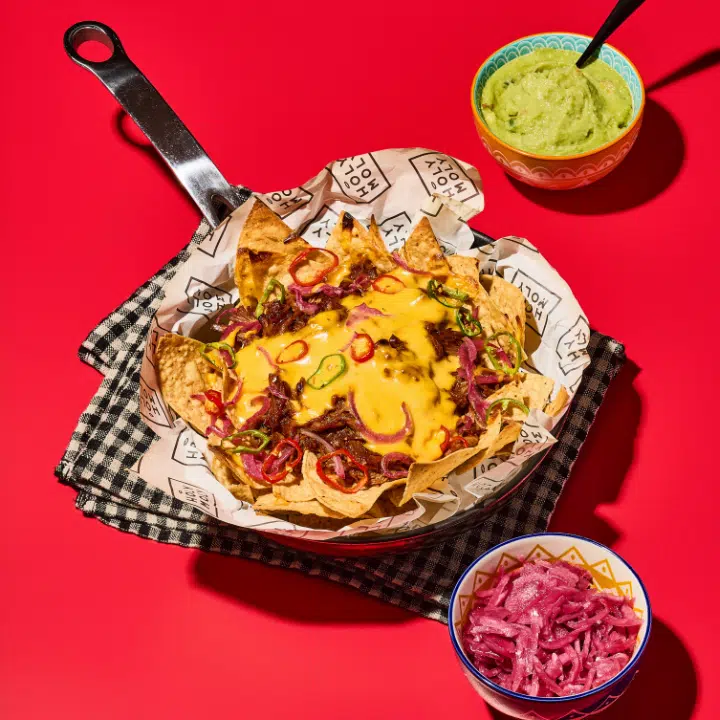 Nachos, the perfect sharing meal! Easy and packed full of flavour these smoky pulled pork nachos are a 10/10 when smothered in our Nacho Chilli Cheese.